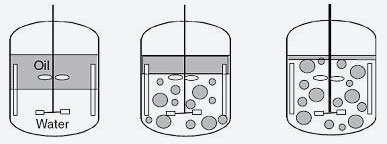 通常用完全分散和均勻分散兩個概念來描述液液兩相的分散程度。完全分散狀態只能粗略地反映分散程度。當攪拌設備各部位的液滴濃度都相等時,即認為達到了均勻分散狀態。分散過程如左圖所示: