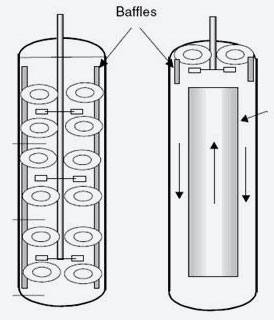 對于容器較高的液液分散,可能還需要多層攪拌器,或者在加上部擋板以及導流筒等。如圖所示: