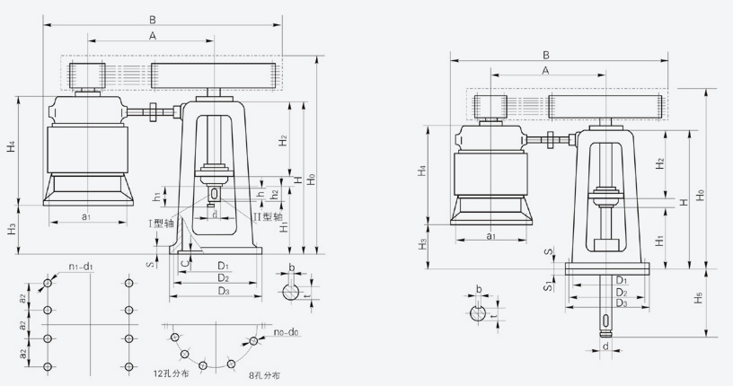 注:本系列減速機配用電機根據上海電機廠樣本編制,若選用其他電機廠產品,電機尺寸須相應調整,(其中YJL1410為湘潭電機廠型號,其電機面安裝尺寸為φ1150,12-φ28均布)。