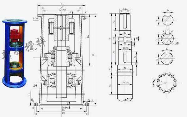 | 注:圖示所注“h”僅與本樣本BLD、LC-Ⅱ、DC-Ⅱ系列減速機相配,如選用其他型號或其他廠家減速機,“h”需另行計算。增高后的LSJ型機架其下部空間高度可容納205、206或207型雙端面機械密封。  |  |
