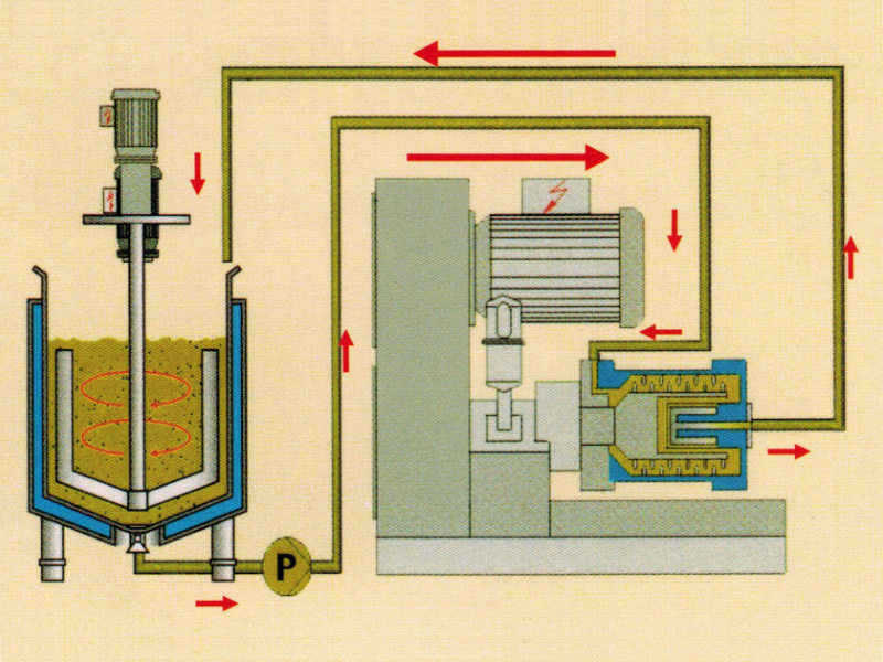 | 可實現低溫砂磨縮短漿料在磨腔內的滯留時間,有效抑制溫度上升。通過循環冷卻水的冷卻,可實現低溫砂磨。
